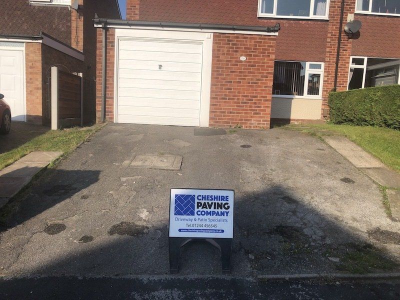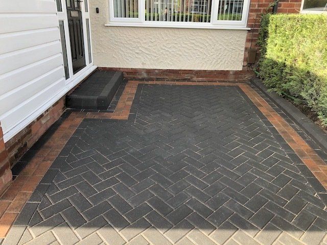 BELOW: Driveway project completed in Hoole, Chester. This driveway was finished in slate coloured Tobermore Tegula block paving with a brindle Tegula inlaid border. The project required a full dig out, new type 1 MOT sub base with Geo Textile membrane, recess manhole covers and new drainage channels.