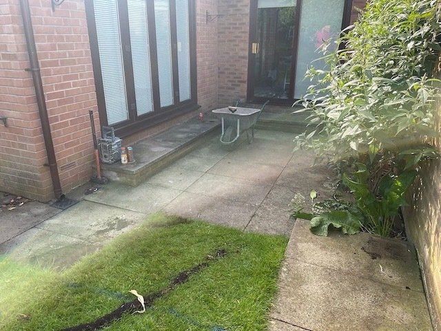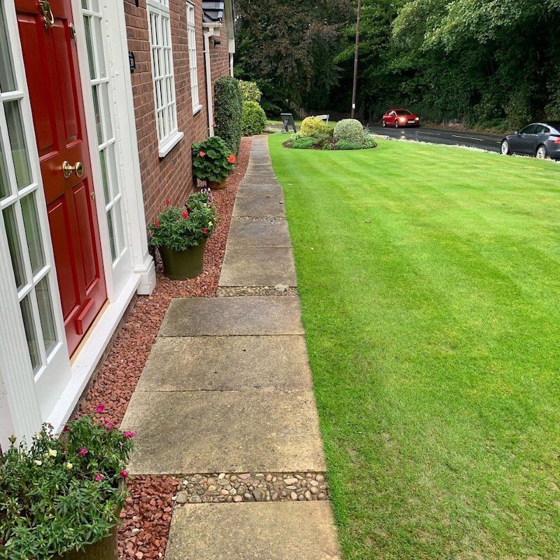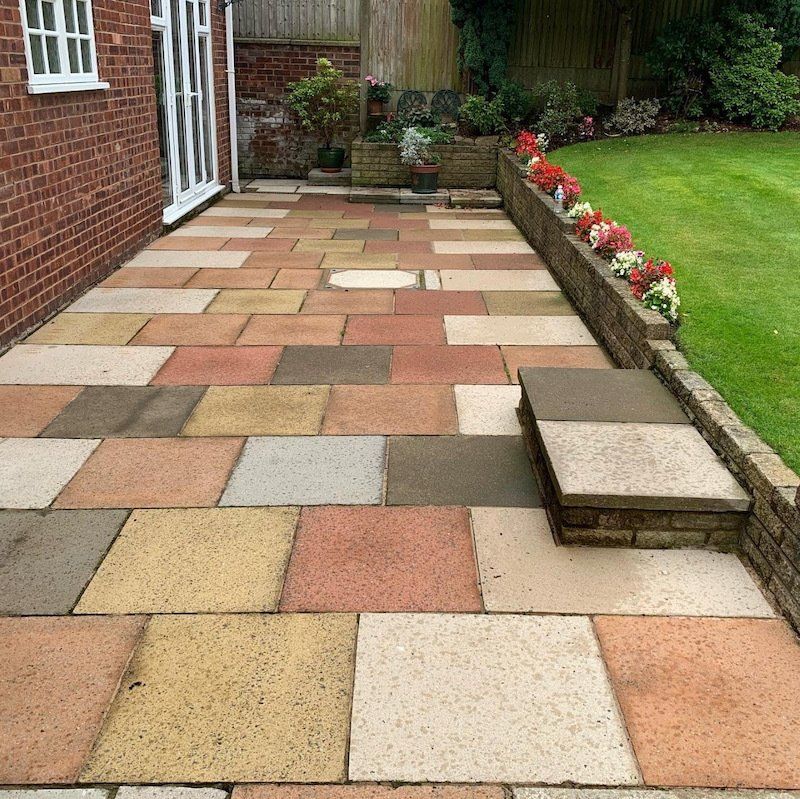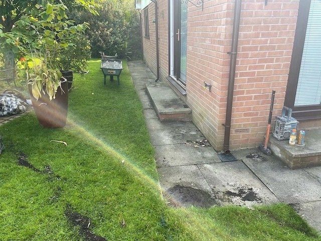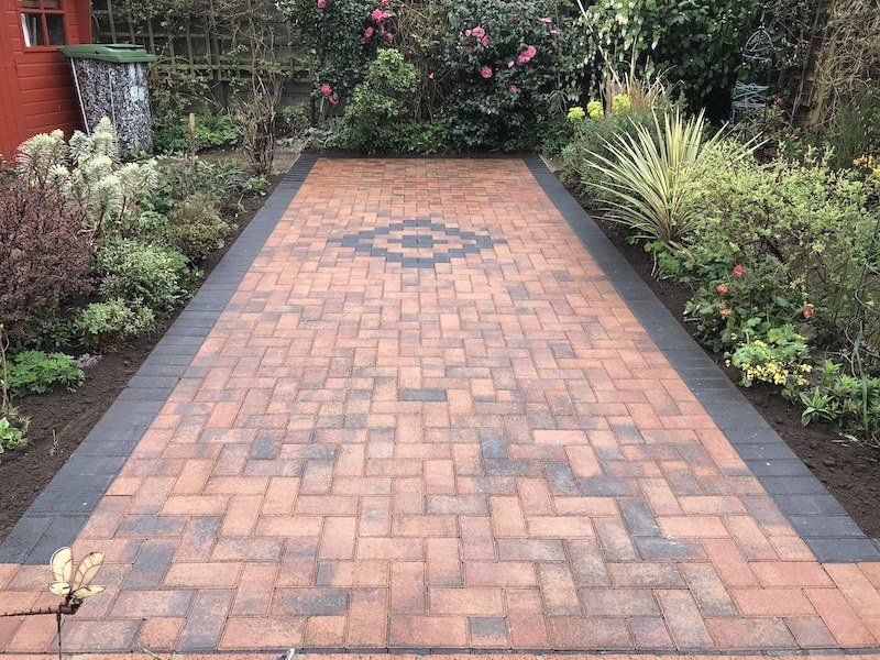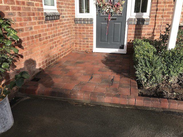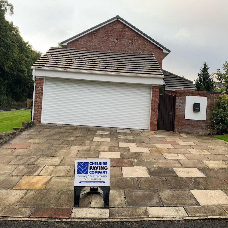 BELOW: New driveway and patio project completed in Frodsham, Cheshire. The driveway, patio and pathways have been replaced with Tobermore Shannon block paving in Heather colour with new reconfigured KL kerb steps. Works included full dig out, new sub base with membrane, new drainage system and recessed manhole covers.