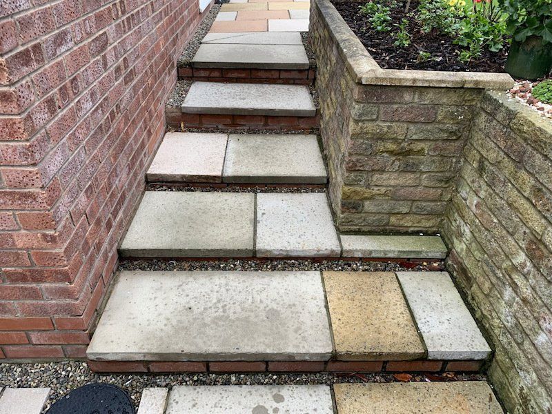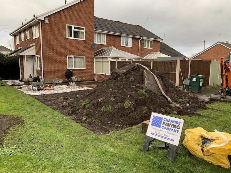 BELOW: Cheshire Paving Company were called in by a homeowner in Chester to put right driveway and patio work carried out poorly by another contractor and save the project from certain disaster. We carried out a full excavation before laying a new MOT Type 1 sub base with Geo Textile membrane and completed the driveway with bracken coloured Tobermore Pedesta block paving and a Charcoal coloured Pedesta border, new steps, drainage channels, recess manhole covers and kerbs. The moral of this story is, always choose the right company to carry out your driveway or patio work at the outset. That company is Cheshire Paving Company, Cheshire's Number 1 Driveway and patio specialists.