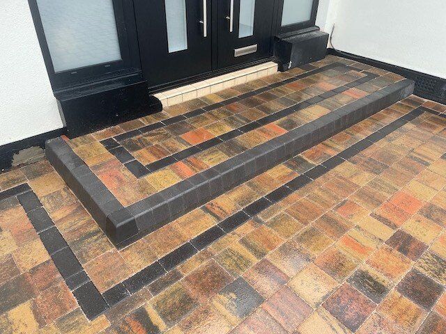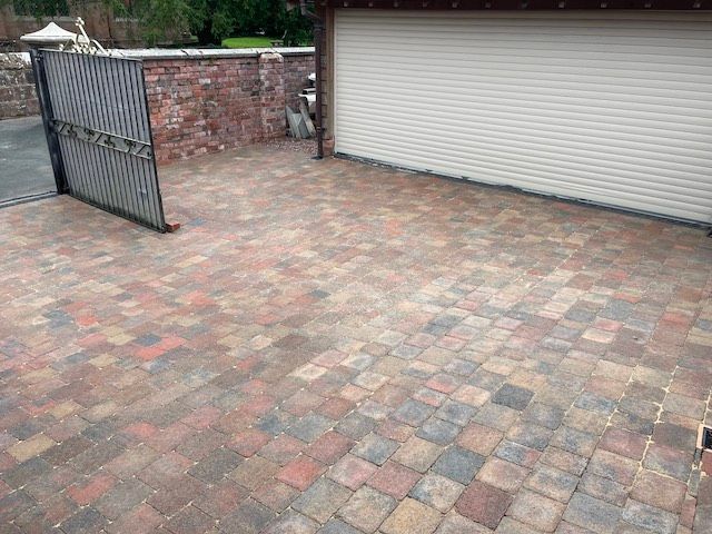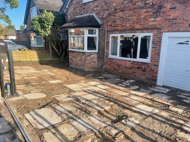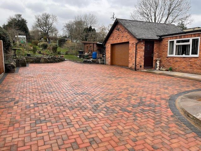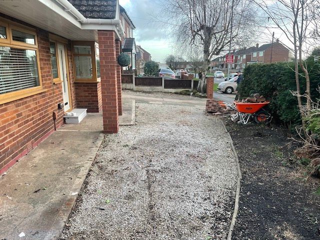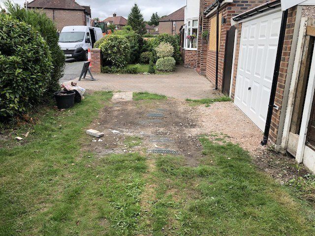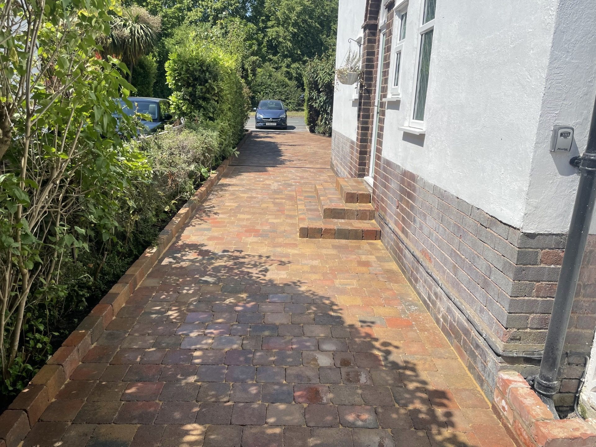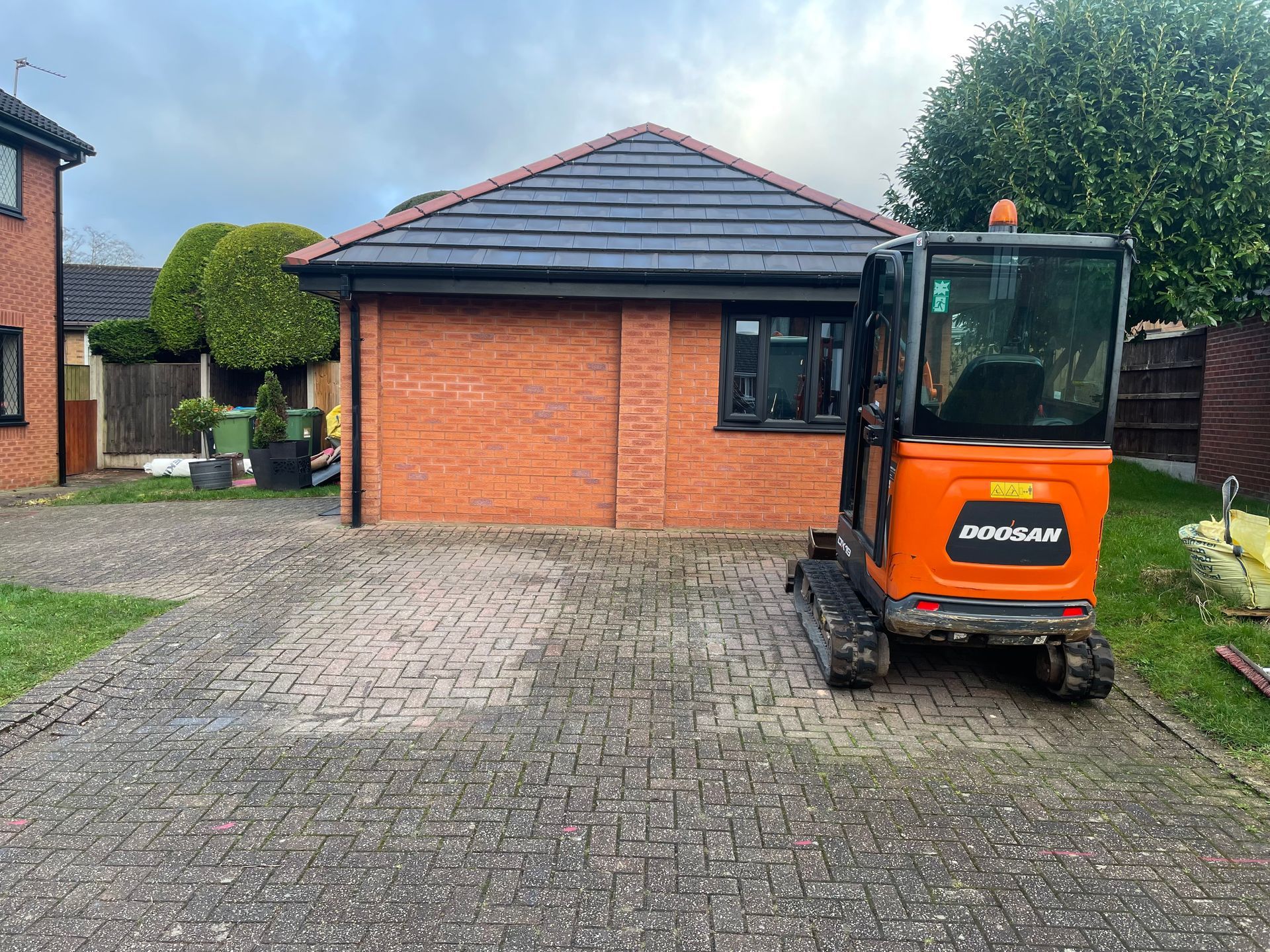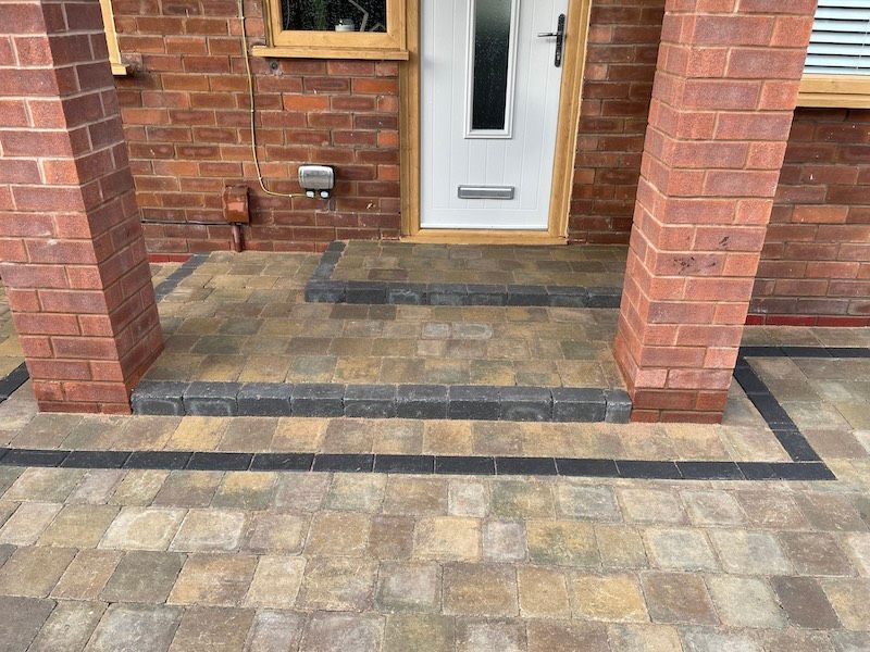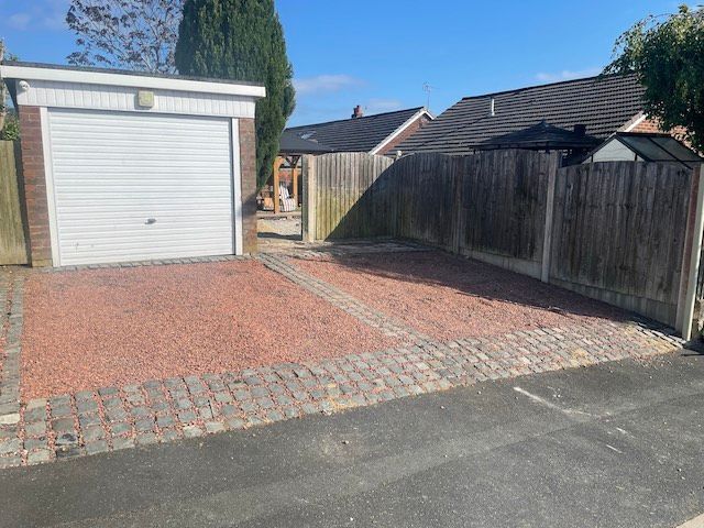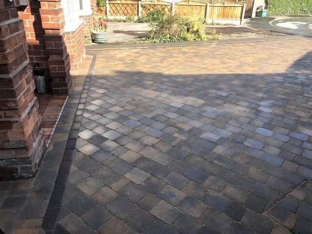 BELOW: A driveway project in Chester, Cheshire. The driveway is finished in heather coloured Tobermore Shannon block paving with a golden Pedesta inlaid border. The project required a full dig out, new MOT Type 1 sub base with Geo Textile membrane, drain gulleys, recess manhole covers, drainage channels and a new step.