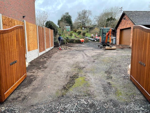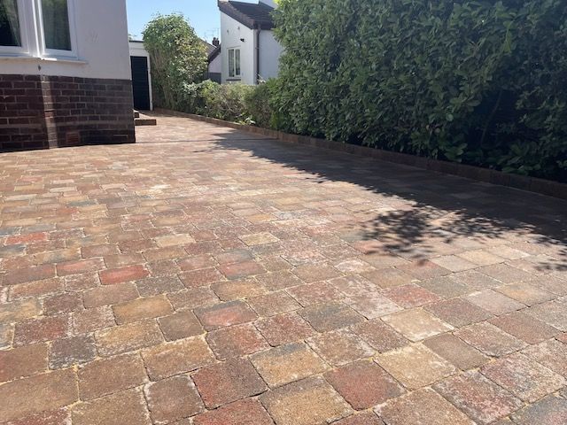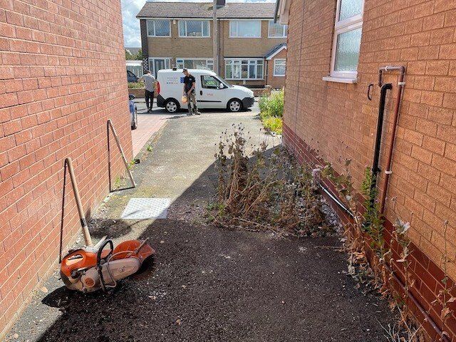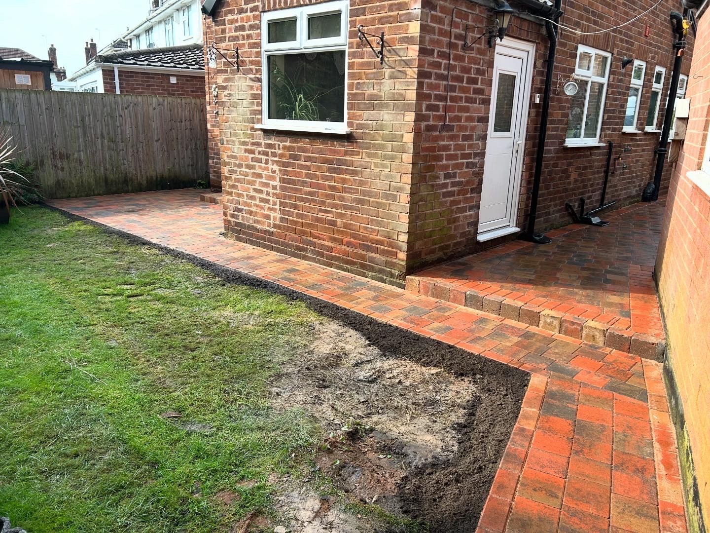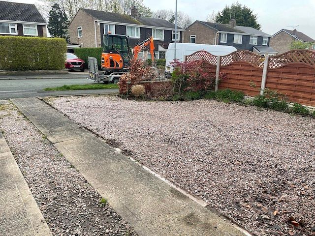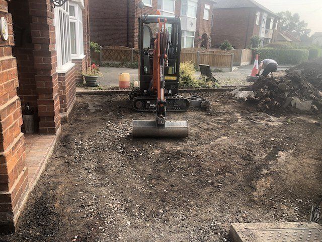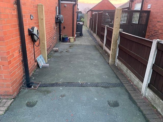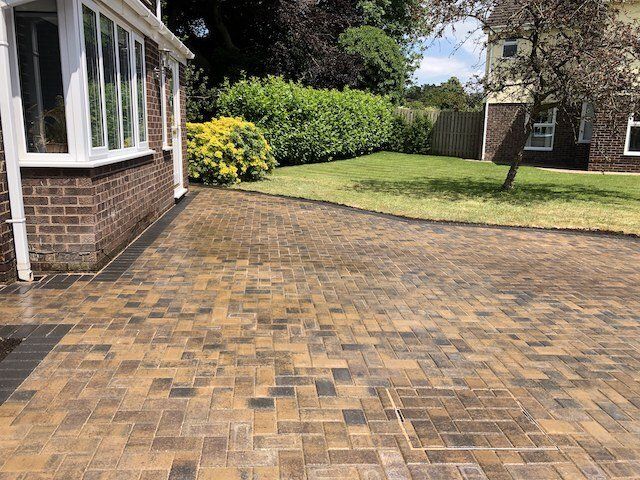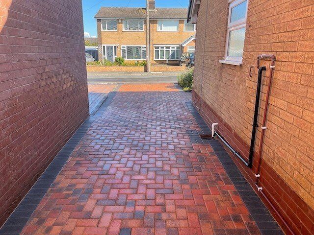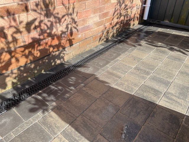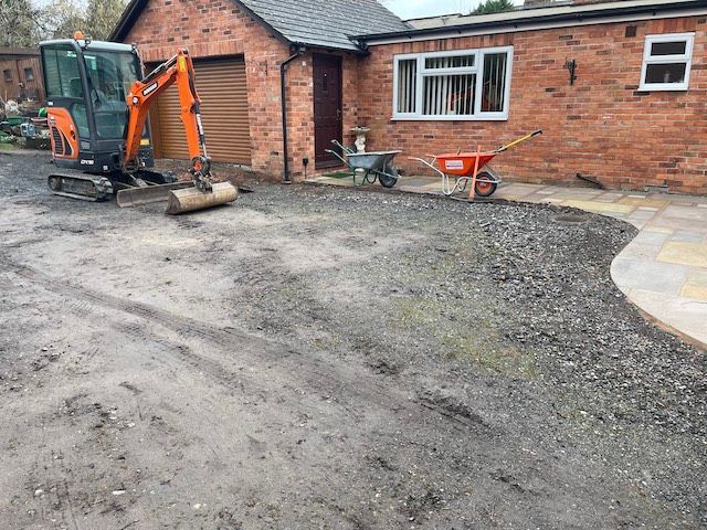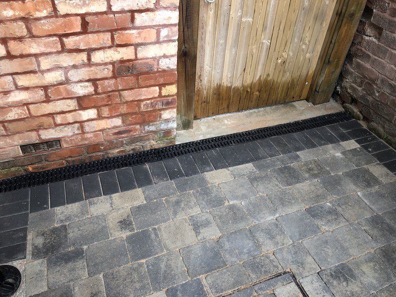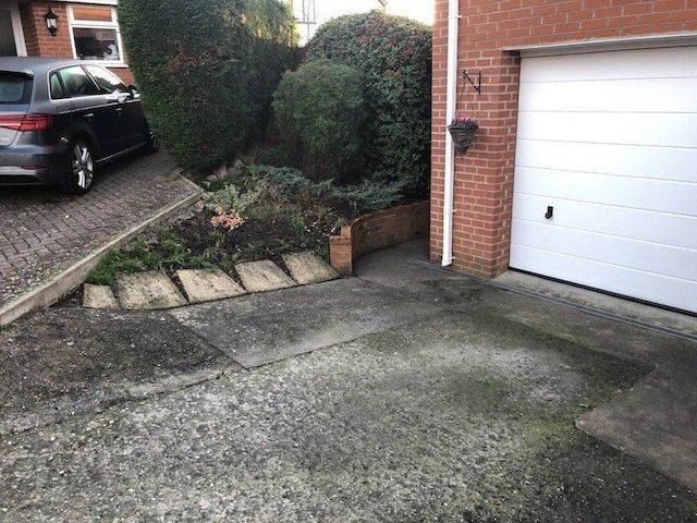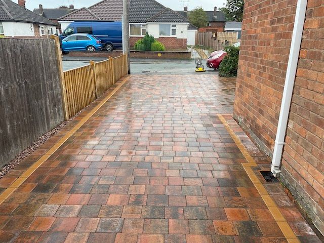 BELOW: A driveway project in Chester, Cheshire. The driveway is finished in heather coloured Tobermore Shannon block paving with a golden Pedesta inlaid border. The project required a full dig out, new MOT Type 1 sub base with Geo Textile membrane, drain gulleys, recess manhole covers, drainage channels and a new step.