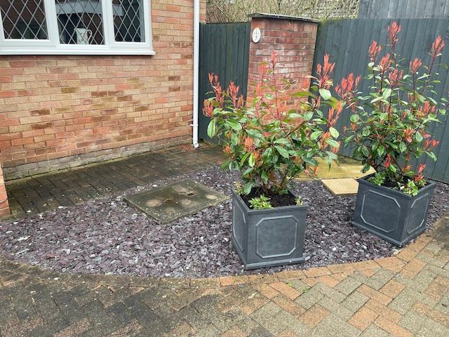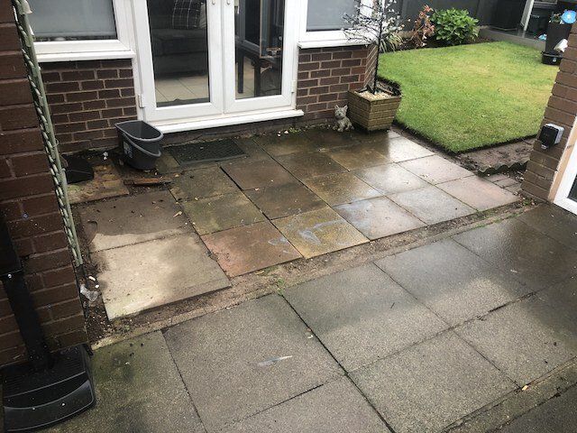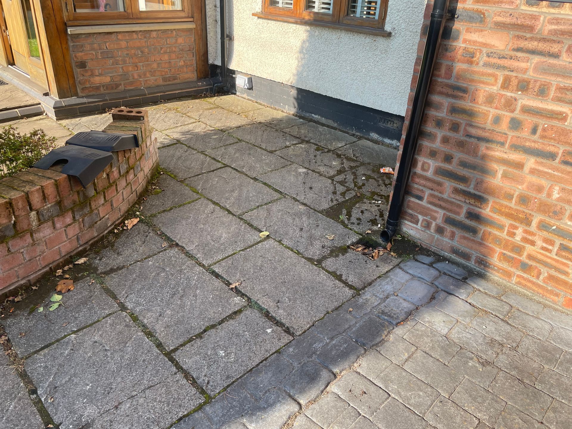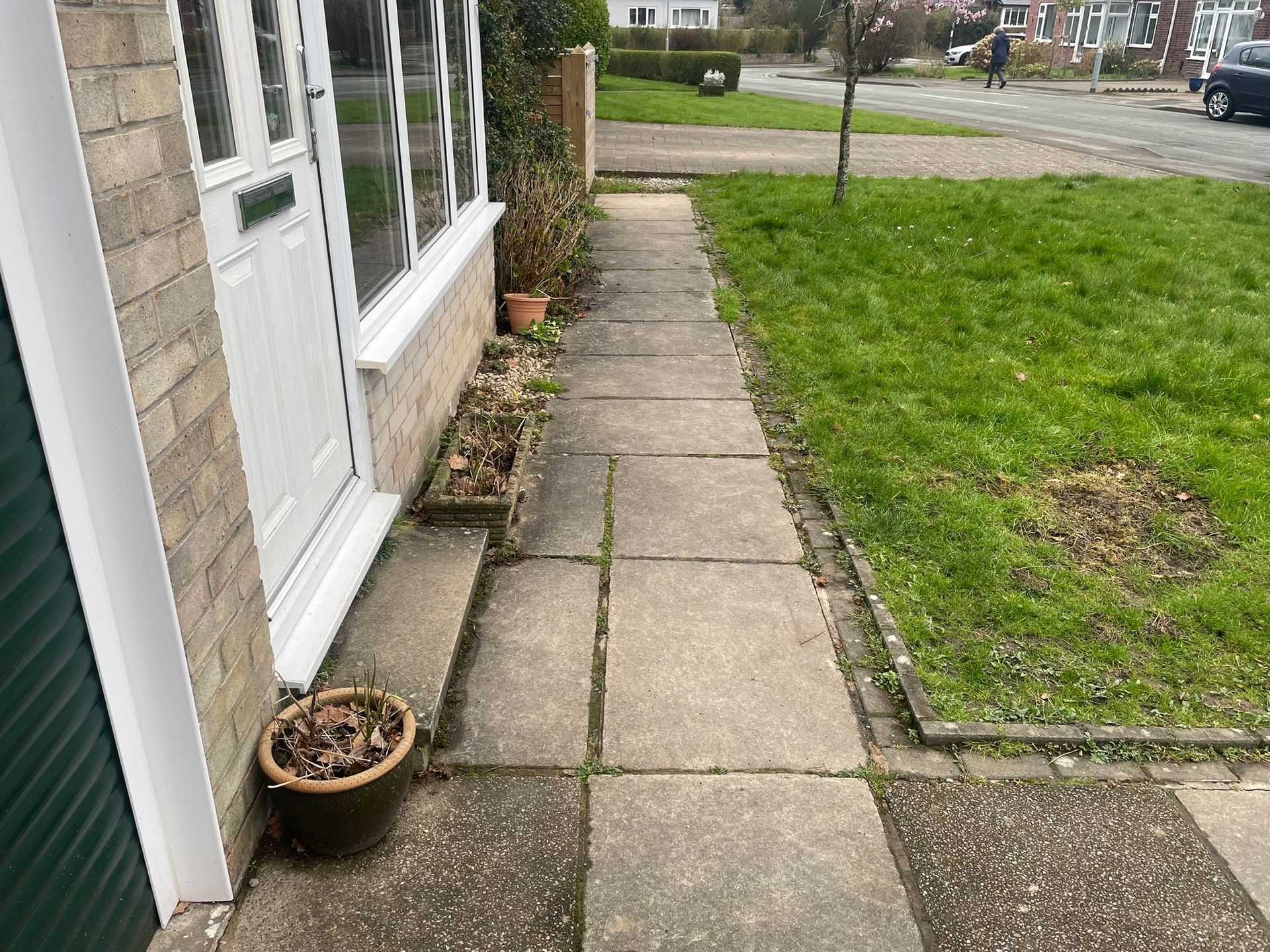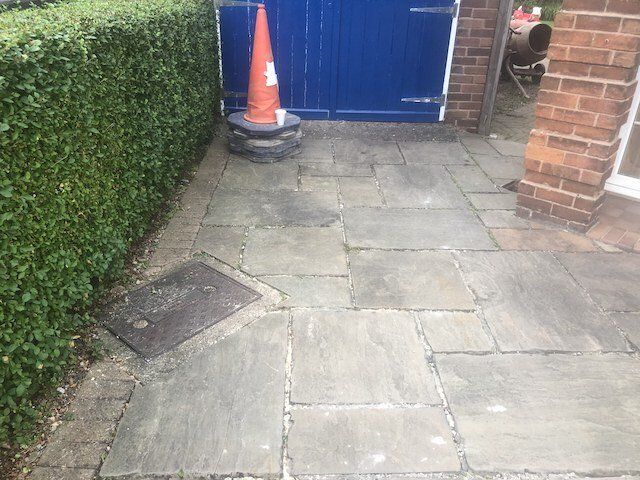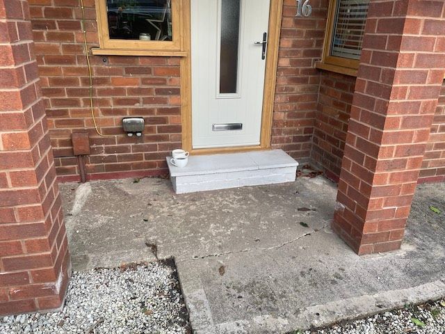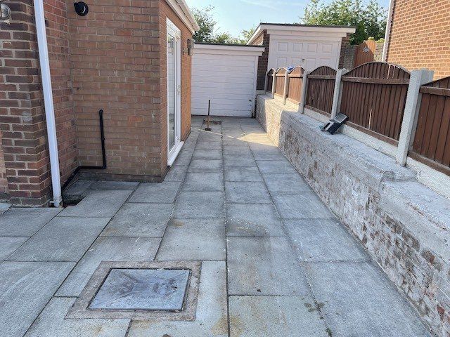 BELOW: New driveway and patio project completed in Frodsham, Cheshire. The driveway, patio and pathways have been replaced with Tobermore Shannon block paving in Heather colour with new reconfigured KL kerb steps. Works included full dig out, new sub base with membrane, new drainage system and recessed manhole covers.