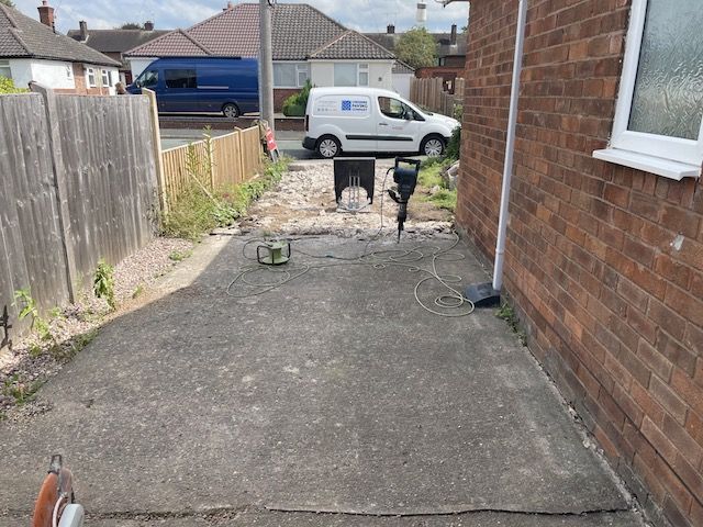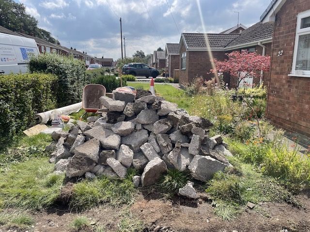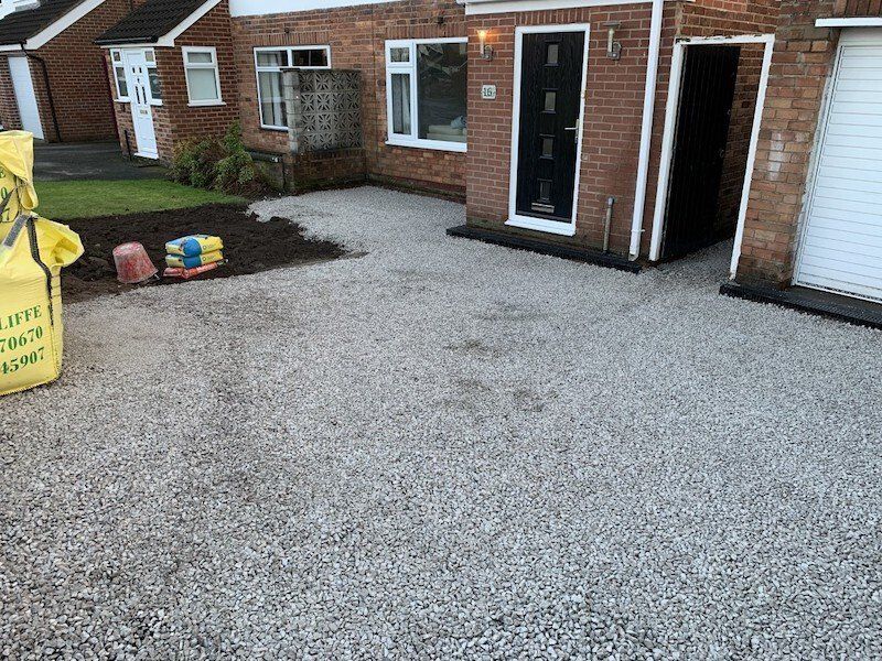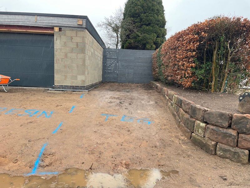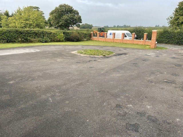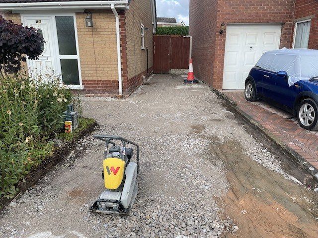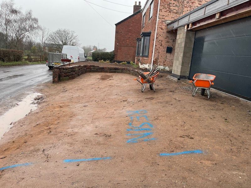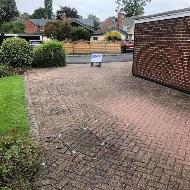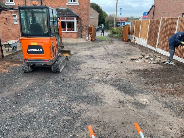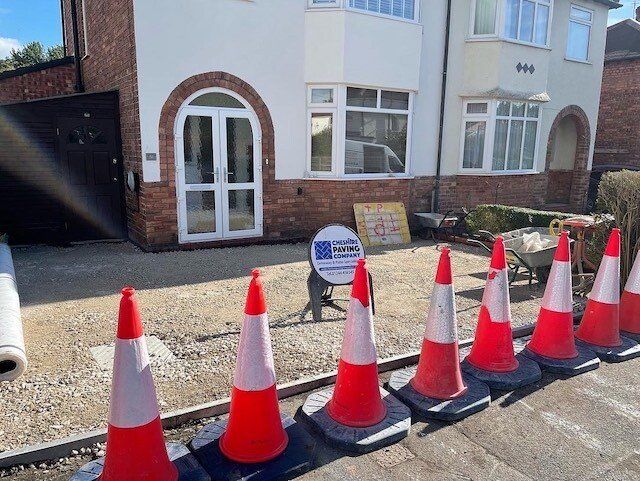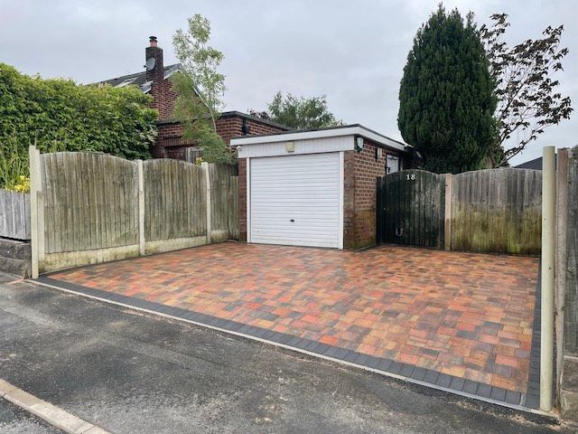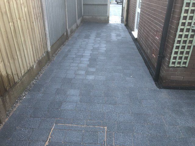 BELOW: A Car Park / Driveway Project Completed In Northwich Cheshire. The Car Park & Pathways Are Finished In Tobermore Pedesta Block Paving In The Colour Of Slate With Charcoal Treble Borders. Full Dig Out, New MOT Type 1 Sub Base With Geo Textile Membrane, Recess Manhole Covers, Drainage Channels & Kerbs.