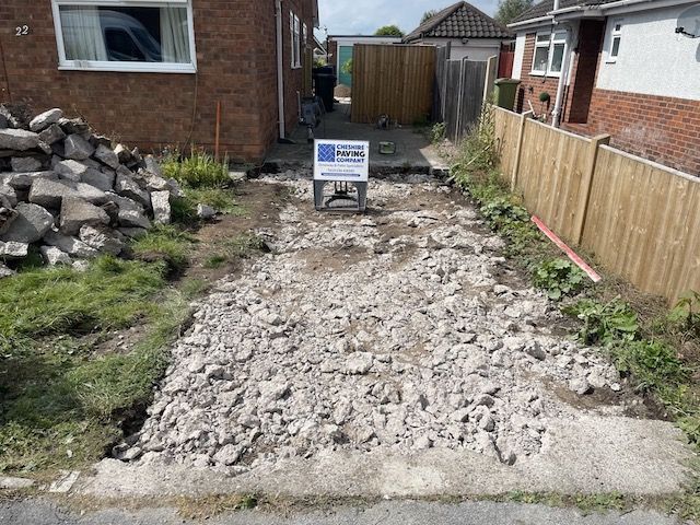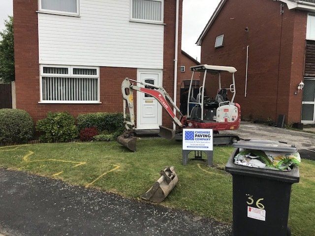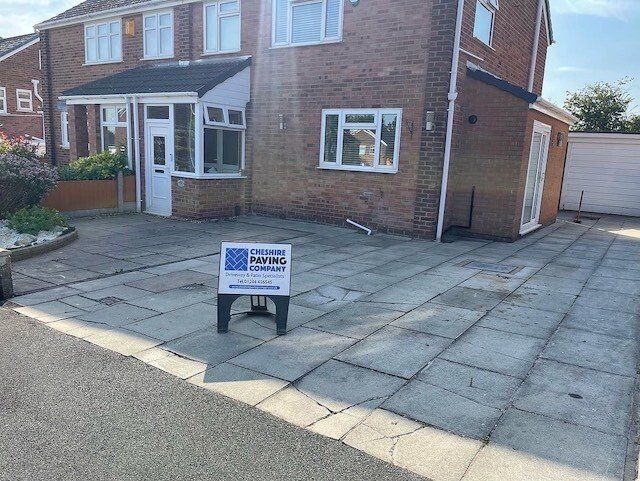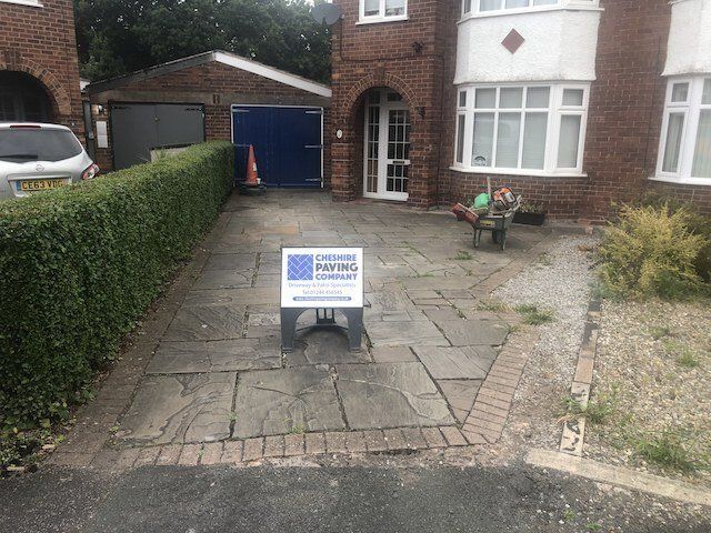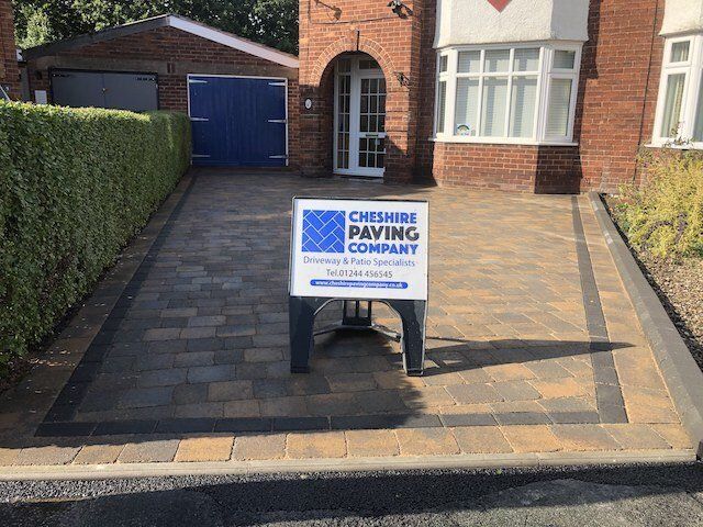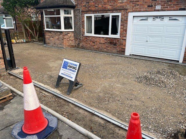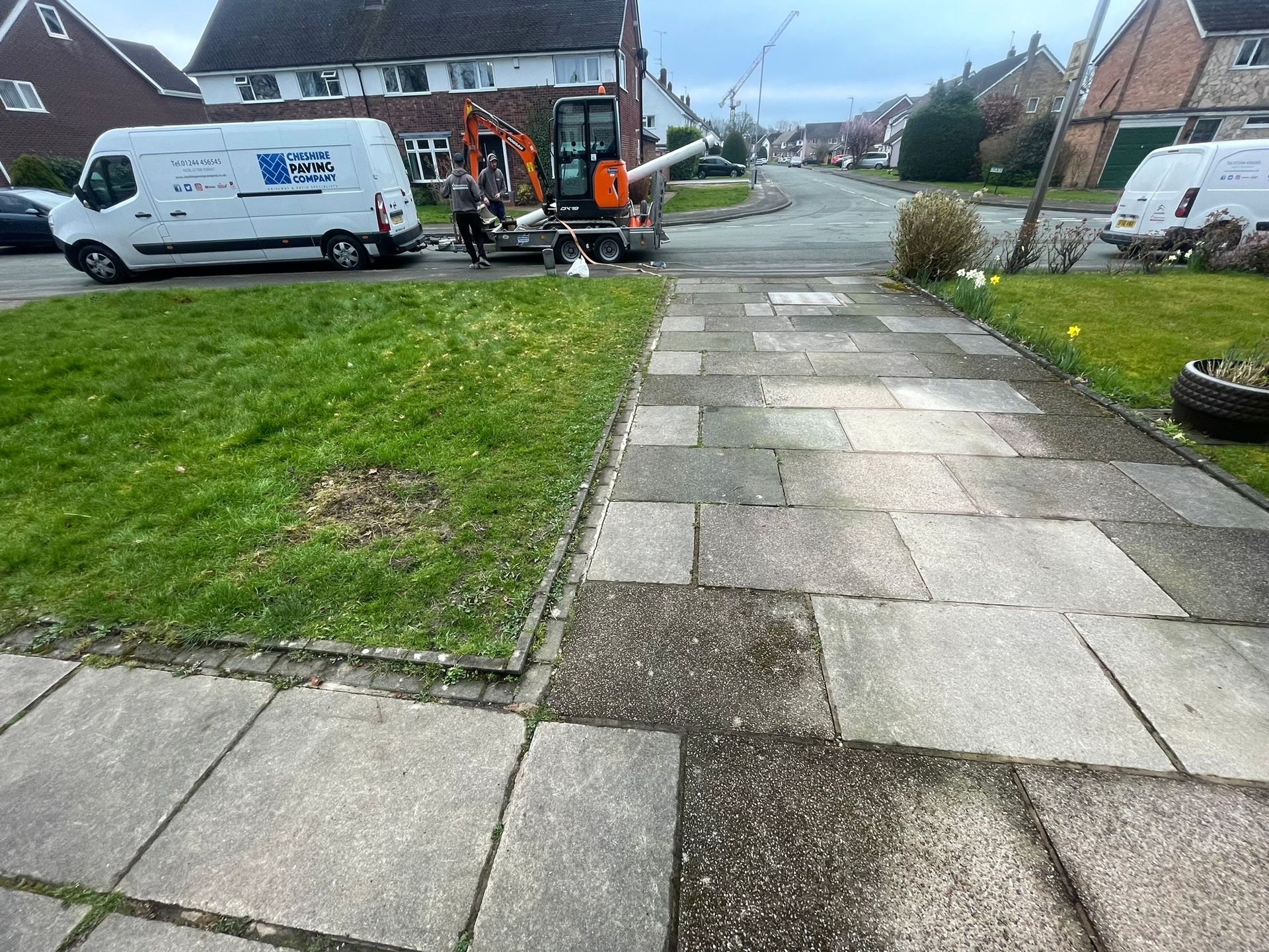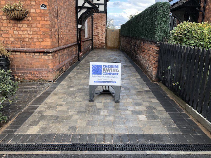 BELOW: Cheshire Paving Company were called in by a homeowner in Chester to put right driveway and patio work carried out poorly by another contractor and save the project from certain disaster. We carried out a full excavation before laying a new MOT Type 1 sub base with Geo Textile membrane and completed the driveway with bracken coloured Tobermore Pedesta block paving and a Charcoal coloured Pedesta border, new steps, drainage channels, recess manhole covers and kerbs. The moral of this story is, always choose the right company to carry out your driveway or patio work at the outset. That company is Cheshire Paving Company, Cheshire's Number 1 Driveway and patio specialists.