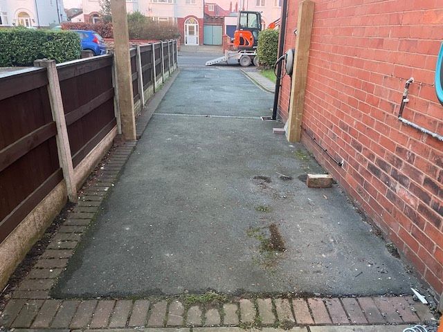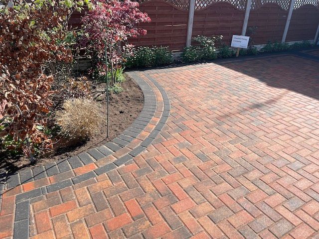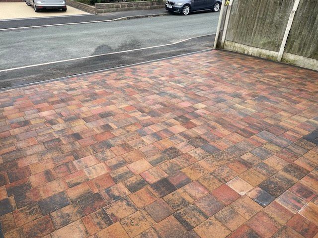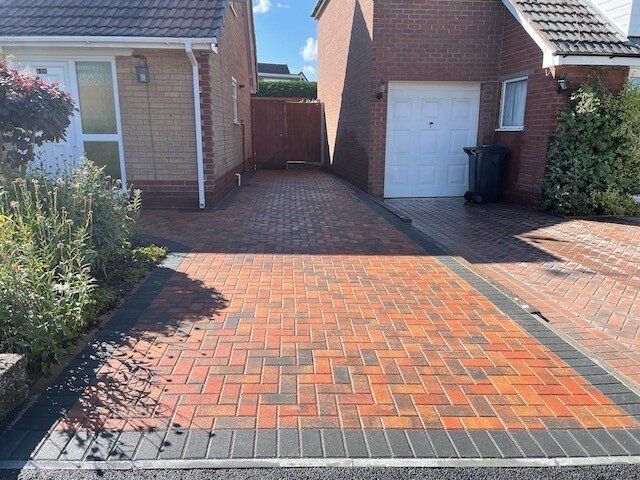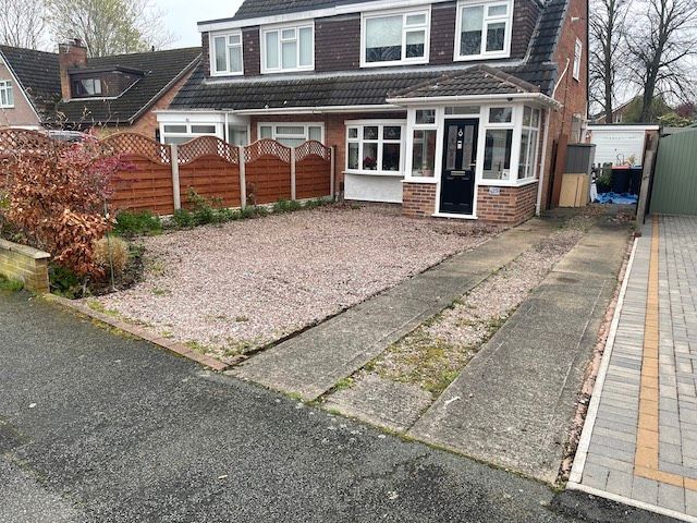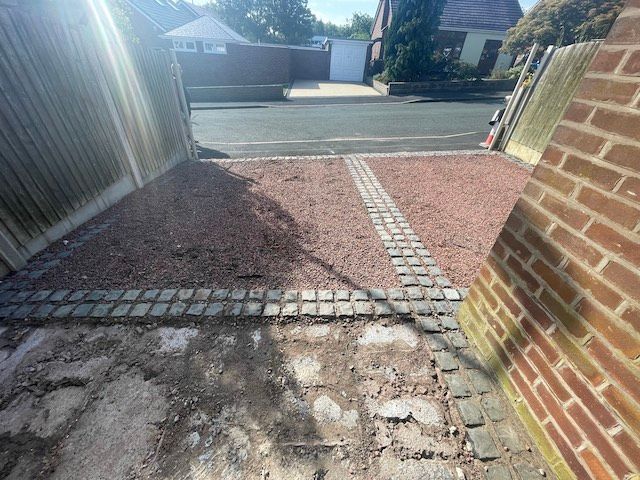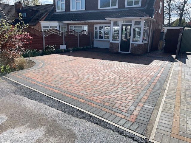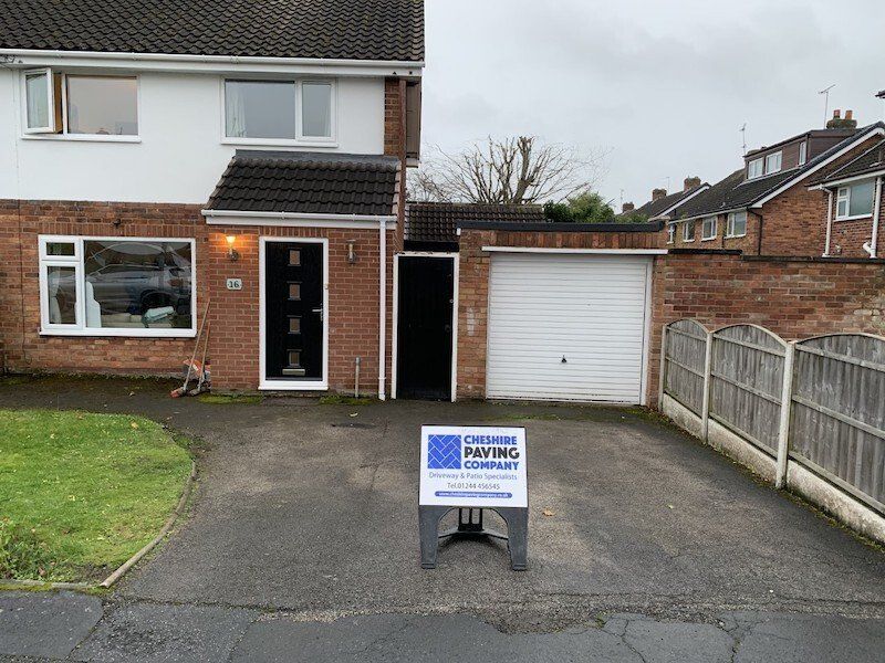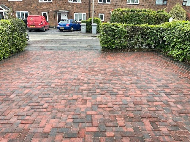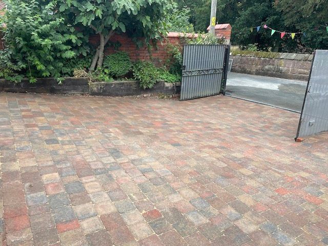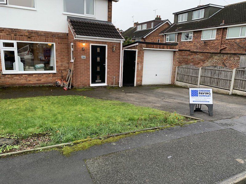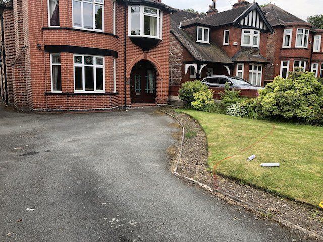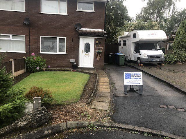 BELOW: A Driveway Project Completed In Hoole, Chester Cheshire. This Driveway Is Finished In Tobermore Shannon Block Paving In The Colour Heather With Pedesta Heather Border. Full Dig Out, New MOT Type 1 Sub Base With Geo Textile Membrane, New Pillar To Front Wall Widening Entrance Way, Edging Kerbs, Drainage Channels, New Kerbstones Steps & Recess Mahole Covers.