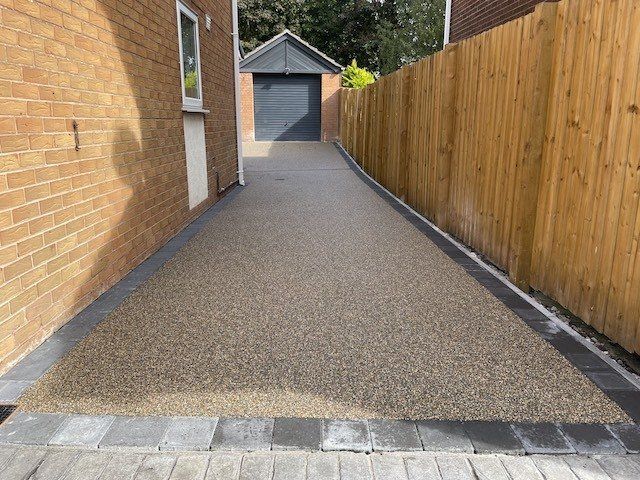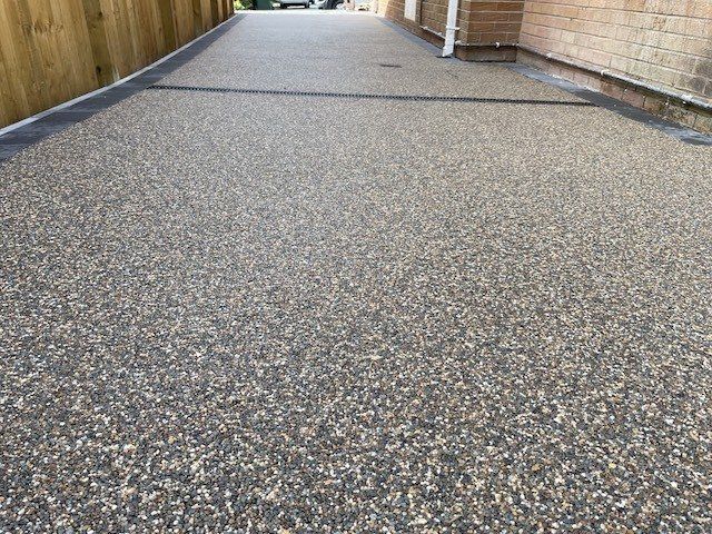 Resin bond is a highly decorative system that combines a two part Polymer resin with a kiln-dried natural aggregate. It is mixed together in a forced-action mixer and then hand-trowelled onto a suitable surface (Tarmacadam or concrete).