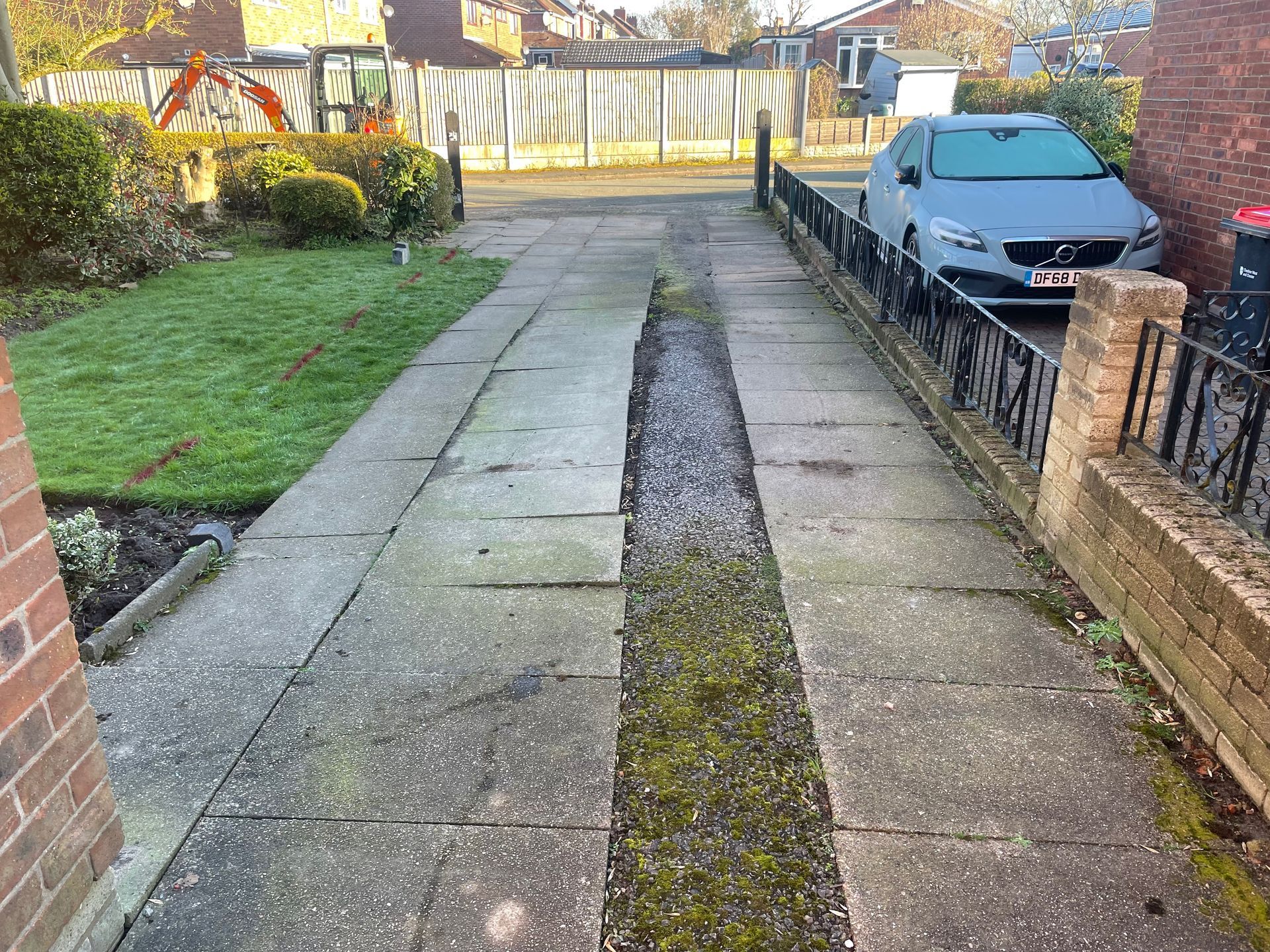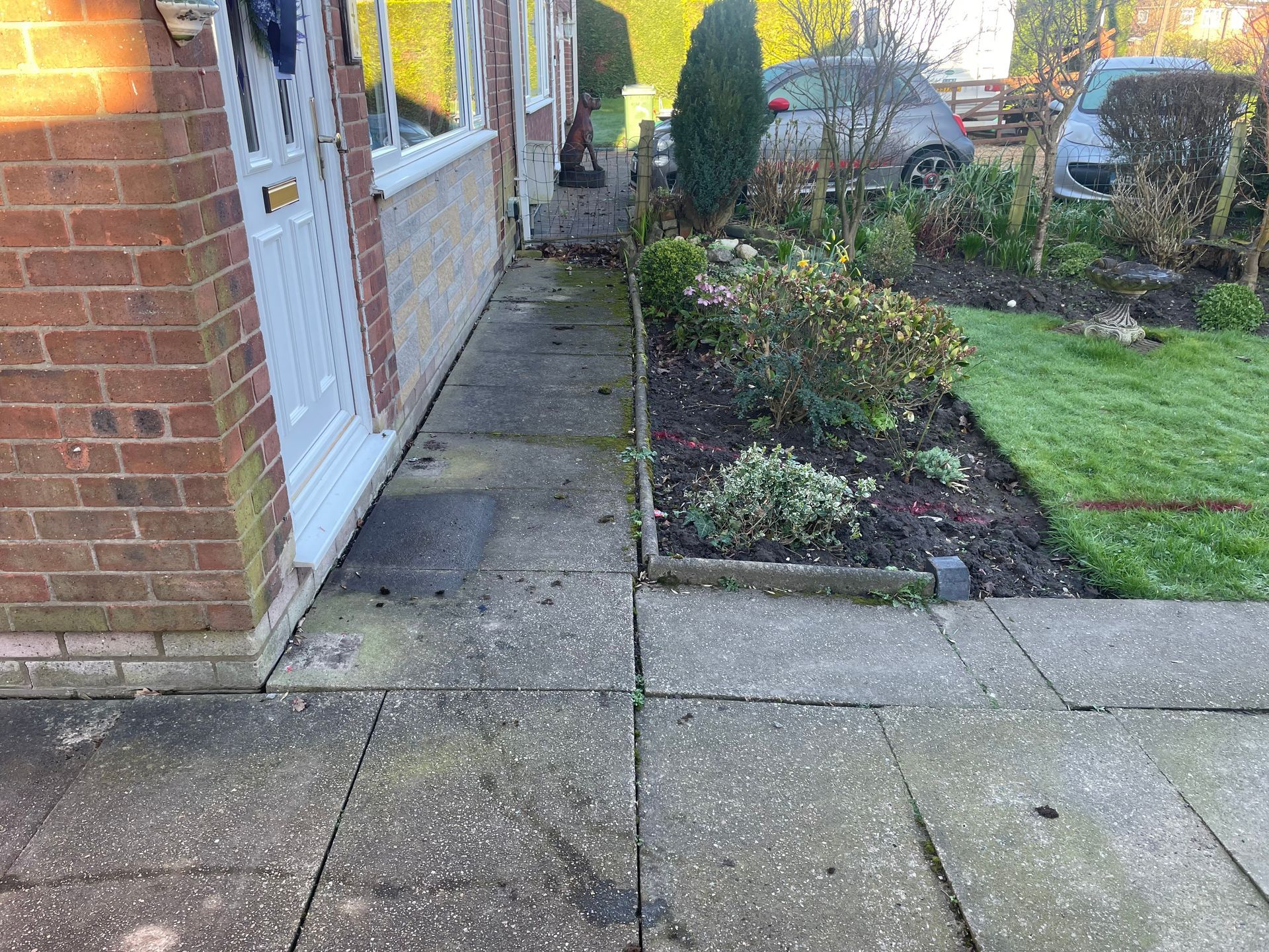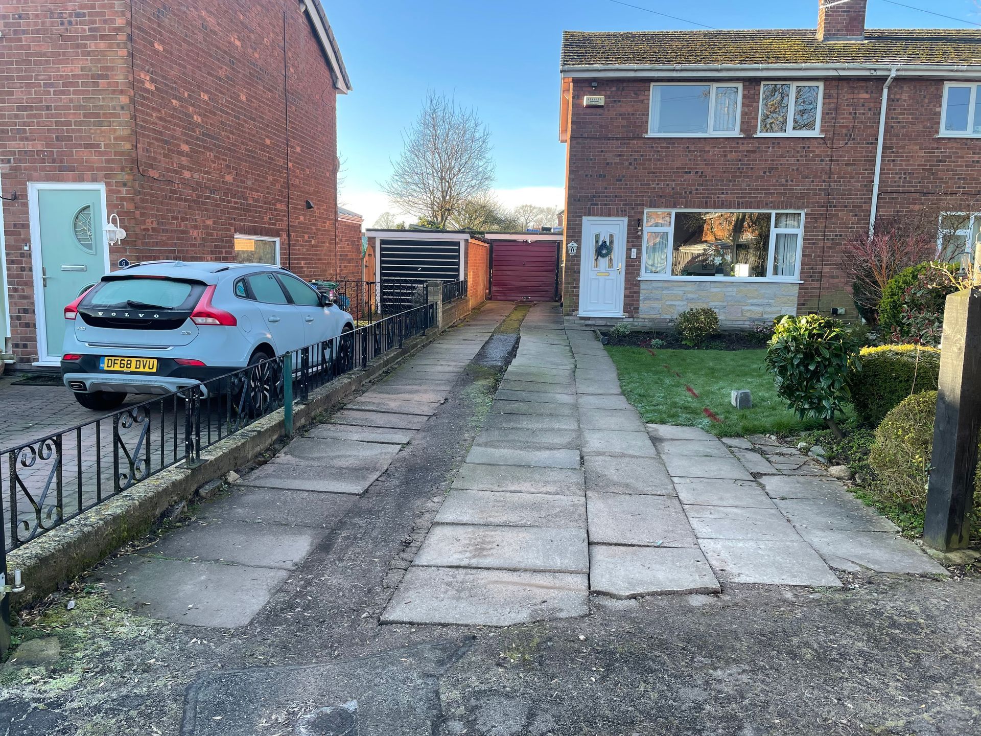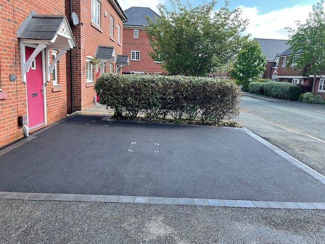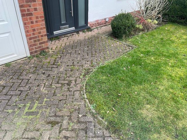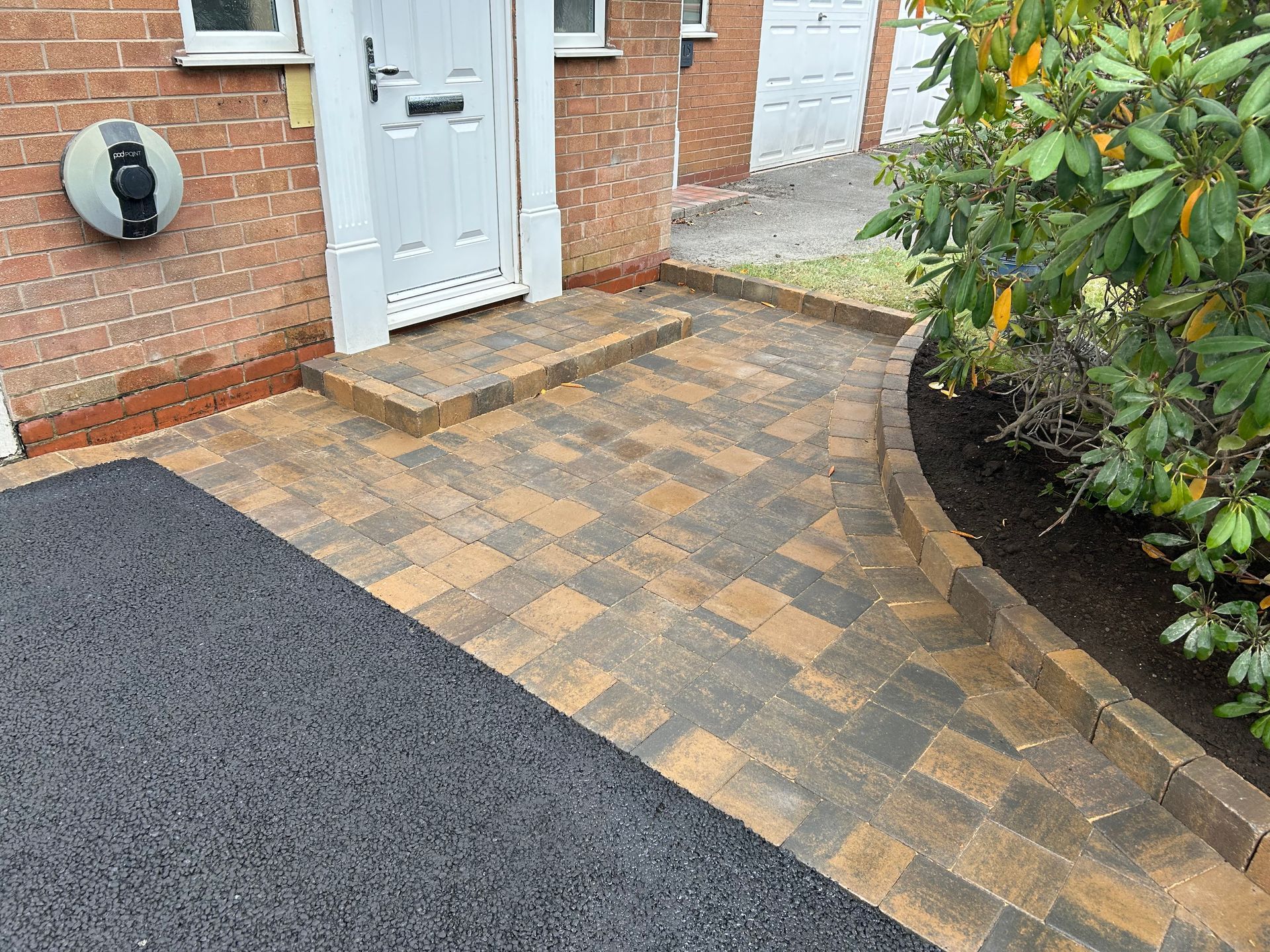 Before and after: A new driveway completed by the Cheshire Paving Company team in Holmes Chapel, Cheshire. This driveway has been finished in 6mm SMA tarmac with a Tobermore Tegula Heather block paving border. Natural Indian stone to pathways. The project involved a full dig out, new sub base, drainage and kerbs.