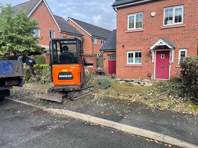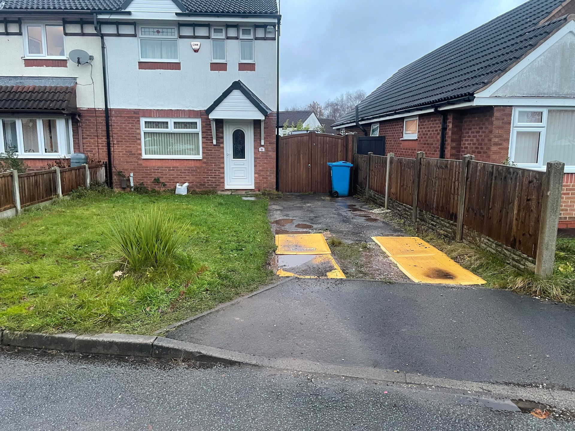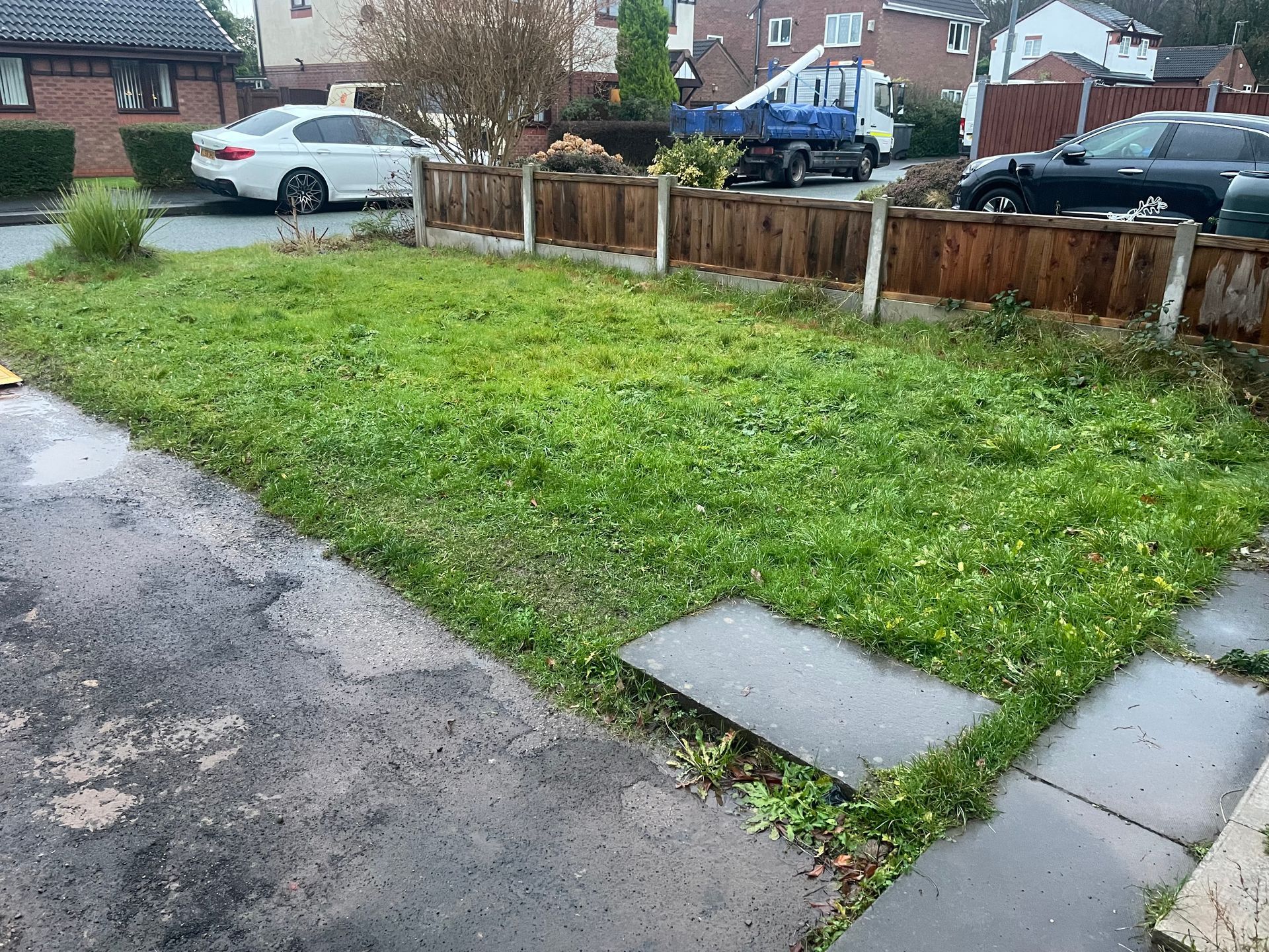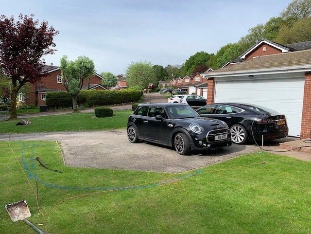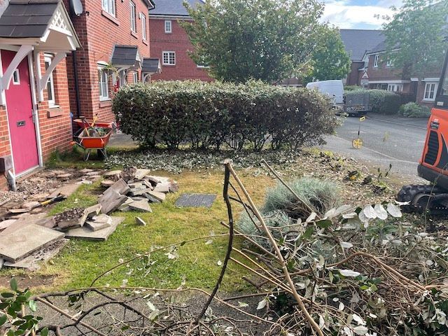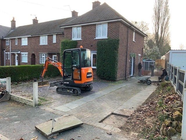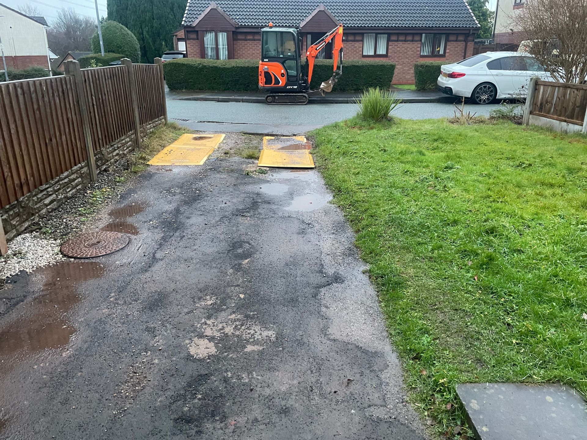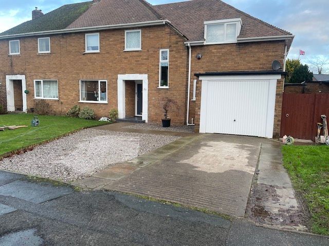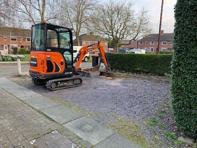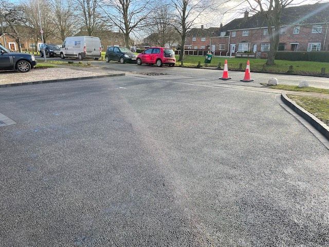 Before and after: A new driveway project completed in Weaverham, Northwich, Cheshire. This driveway was finished in 10mm SMA tarmac with Tobermore Shannon slate coloured block paved borders, edging kerbs, a sleeper wall, recess manhiole covers and linear drainage channels. The project required a full dig out, MOT Type 1 hardcore sub base and Geo Tex membrane.