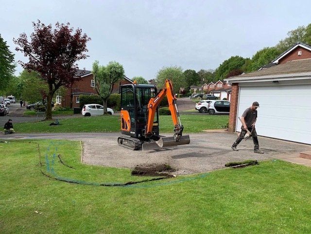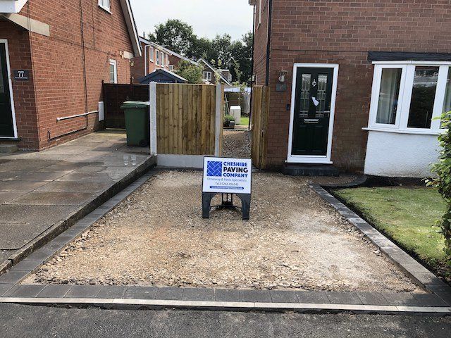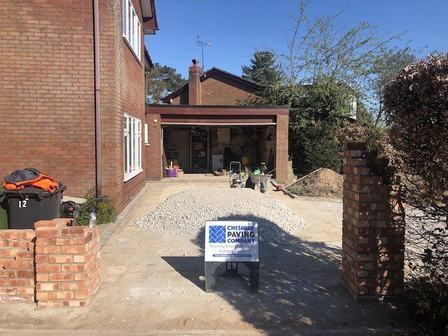 Before and after: A new driveway project completed this week in Saughall, Chester. This driveway was finished in 10mm SMA tarmac with Tobermore Shannon block paved borders, kerbstone borders and linear drainage channels. Full excavation and new MOT type 1 hardcore sub base was required with Geo Textile membrane.